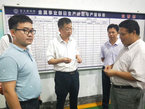 肇庆市科技局领导莅临亚太调研产学研合作工作阅读次数:946 | 发布日期:2020/9/18 | 作者: | 来源:9月16日,肇庆市科技局温树斌局长和陈振刚调研员一行,在四会市副市长魏繁强和四会科技局朱海清局长陪同下,莅临亚太调研产学研合作开展情况。亚太公司副总经理罗国伟等公司管理人员热情接待。
