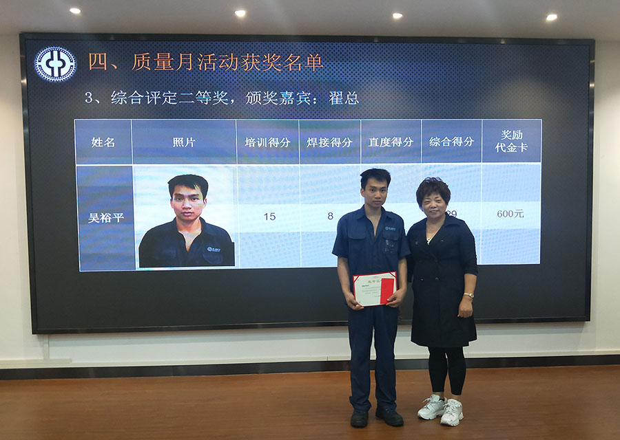 会上,对在质量月活动中知识竞答、技能比赛、综合评比取得优异成绩的员工进了颁奖,以此鼓励他们再接再厉,为亚太的发展继续努力奋斗。