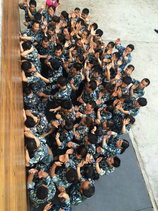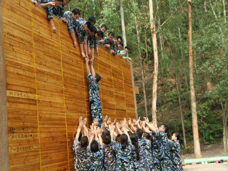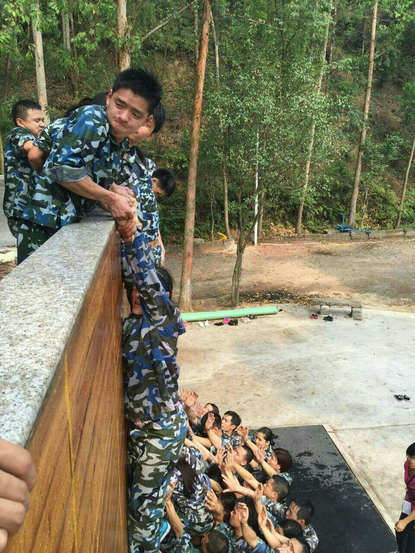 毕业墙:在没有任何工具的帮助下搭建人墙把所有学员攀越4米3湿滑的高墙,成功在毕业墙上留下我们的烙印,这就是团结的力量,亚太员工好样的!
